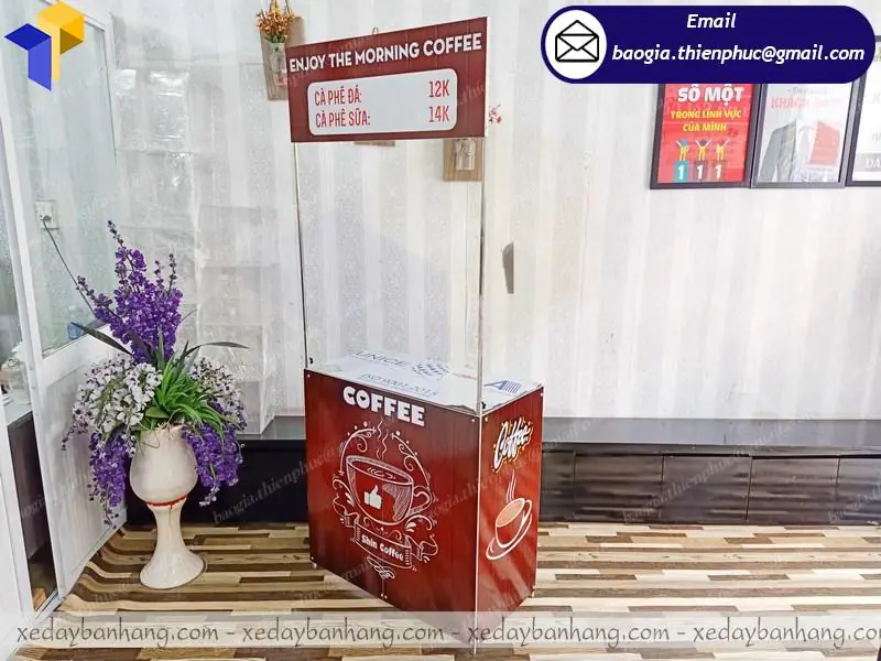 Bạn muốn mua bàn lắp ráp bán cà phê mang về với giá rẻ, chất lượng cao vậy thì Thiên Phúc chính là nơi mà bạn cần. Những chiếc xe lắp ráp bán cà phê do chúng tôi sản xuất đều được đóng trực tiếp từ xưởng không qua trung gian nên giá thành có thể nói là rẻ nhất thị trường.