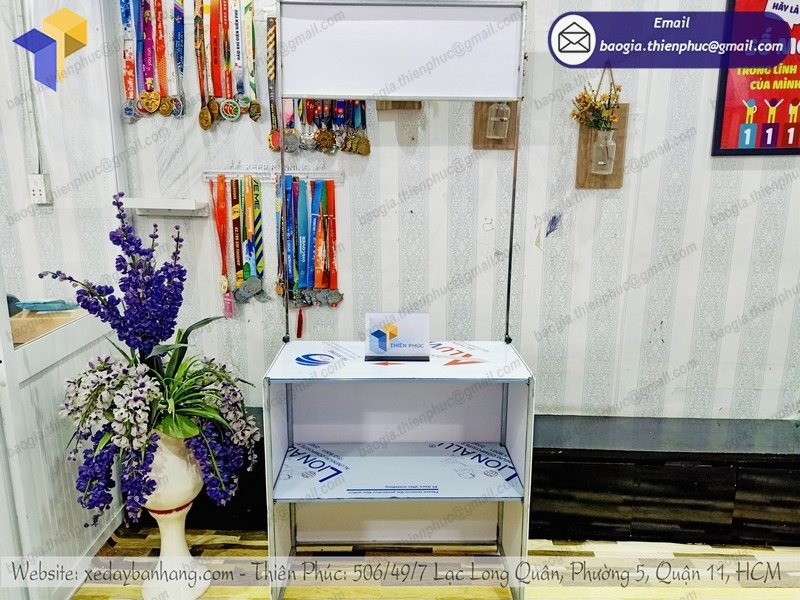 Với thiết kế nhỏ gọn, xinh xắn dễ dàng di chuyển, tháo lắp, nên booth sắt lắp ráp bán hàng độc lạ luôn được các nhà doanh nghiệp, cửa hàng tiếp đón. Vẻ ngoài bắt mắt sẽ khiến cho rất nhiều người nhận ra sản phẩm của bạn. Đặc biệt giá thành của booth sampling rất thấp tối ưu hóa chi phí của doanh nghiệp đồng thời mang lại được lợi nhuận khá lớn cho khách hàng.