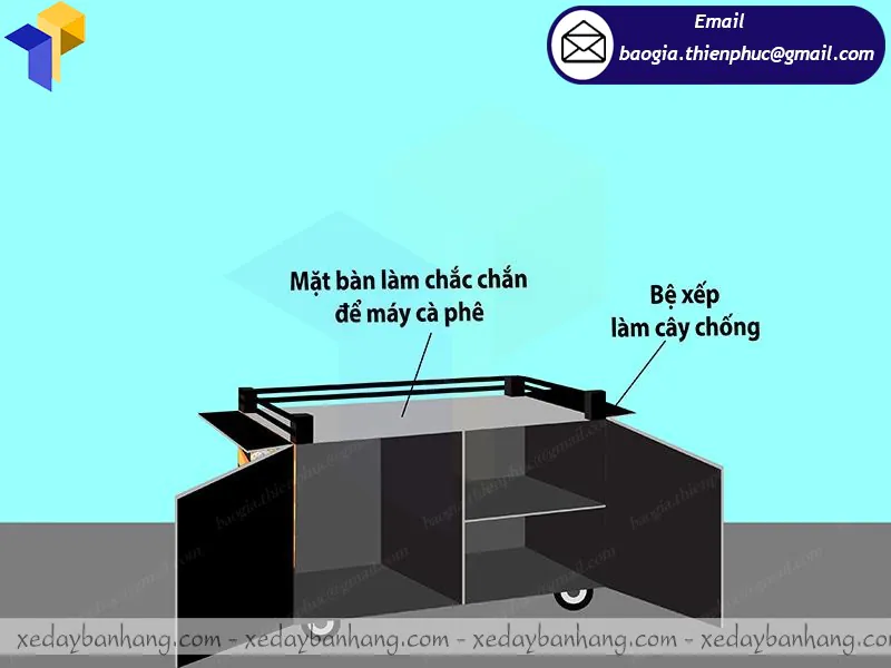 Với thợ gia công có nhiều năm kinh nghiệm trong lĩnh vực gia công thiết kế các loại quầy, xe sắt không mái bán cà phê lòng đường, đa dạng về kích thước, mẫu mã cũng như kiểu dáng sang trọng, hiện đại hay mang phong cách cổ điển đều được các thợ lành nghề tại công ty Thiên Phúc tạo ra, nhằm phục vụ nhu cầu knh doanh của người tiêu dùng.