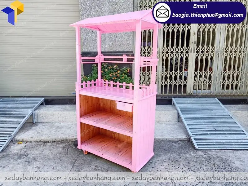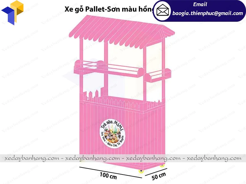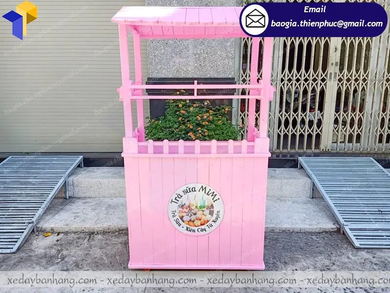 Xe gỗ bán trà sữa tone hồng bắt mắt giá rẻ bất ngờ